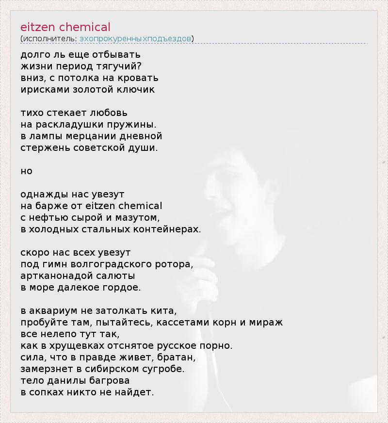 А как ты думаешь, о чем песня "eitzen chemical" ?