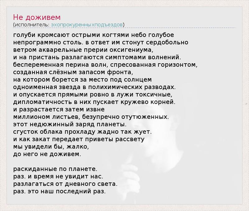 Это интересно:VKЭкспериментальный околоабстрактный хип-хоп от молодого парня из Мурманска.2011 - счастье (Скачать)2011 - зимний... продолжение