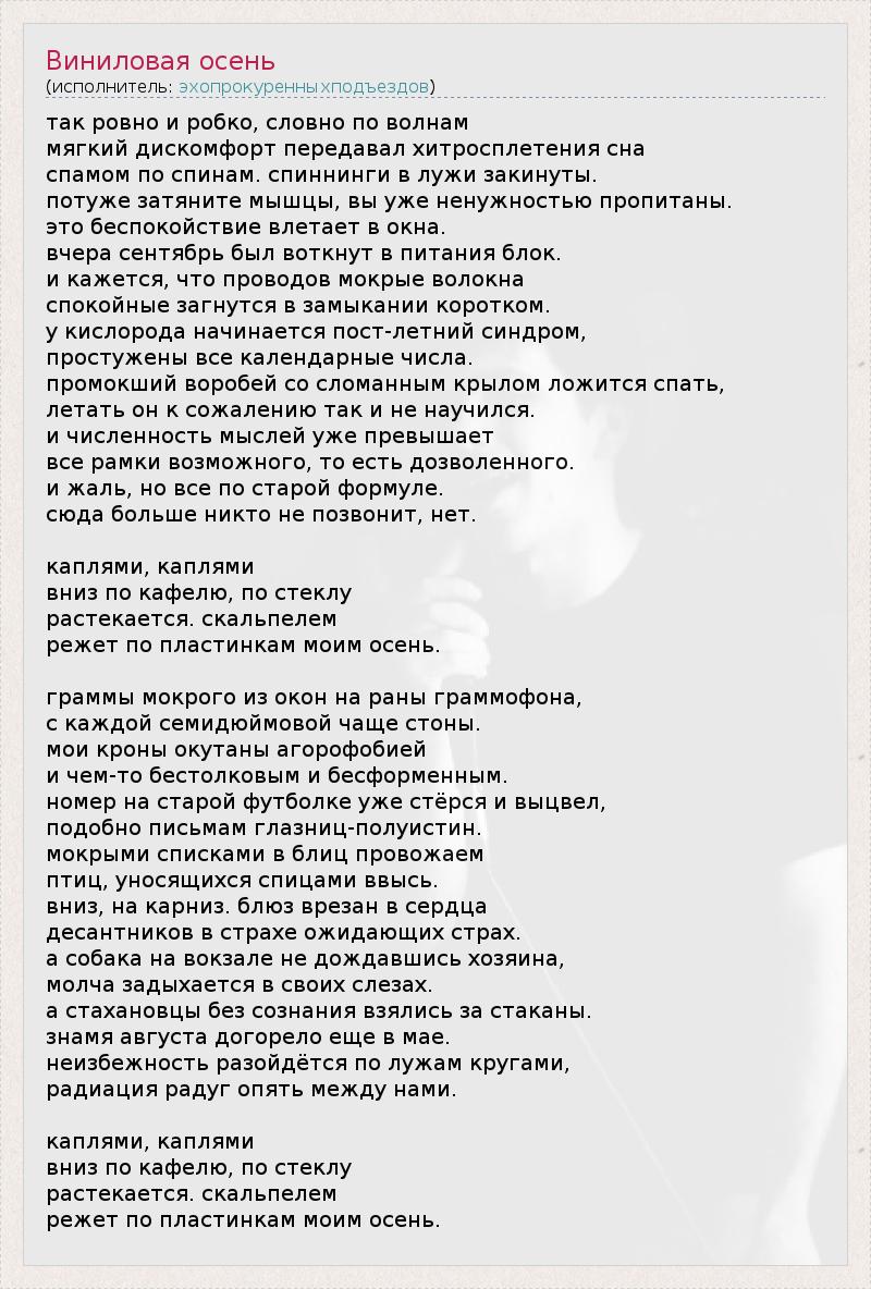 А как ты думаешь, о чем песня "Виниловая осень" ?