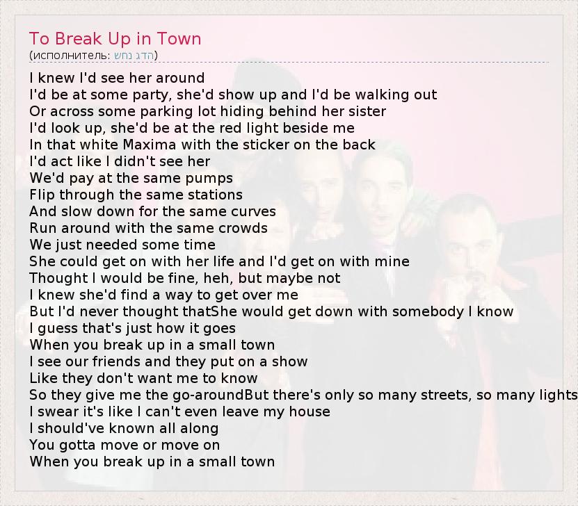 А как ты думаешь, о чем песня "To Break Up in Town" ?