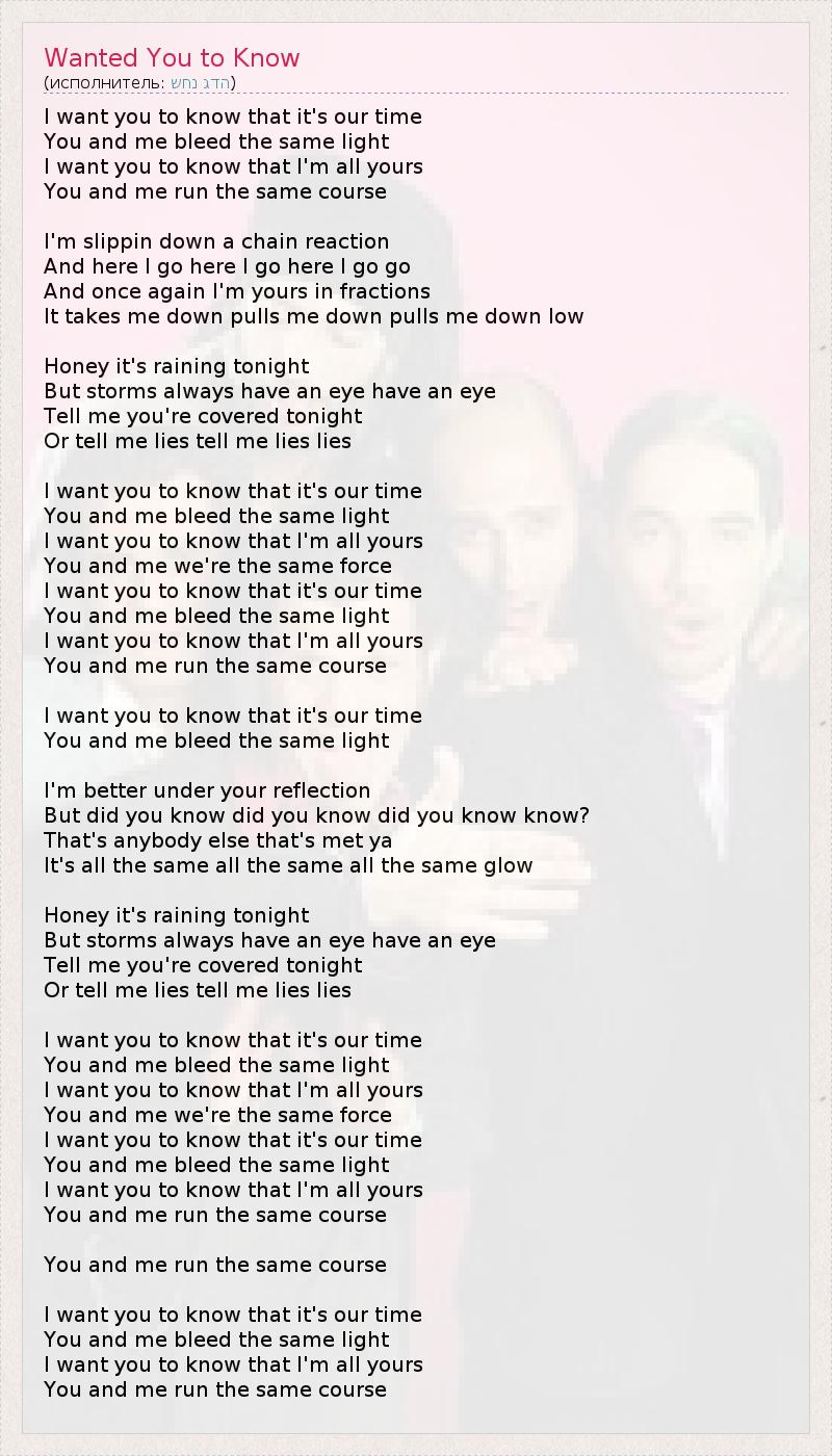 А как ты думаешь, о чем песня "Wanted You to Know" ?