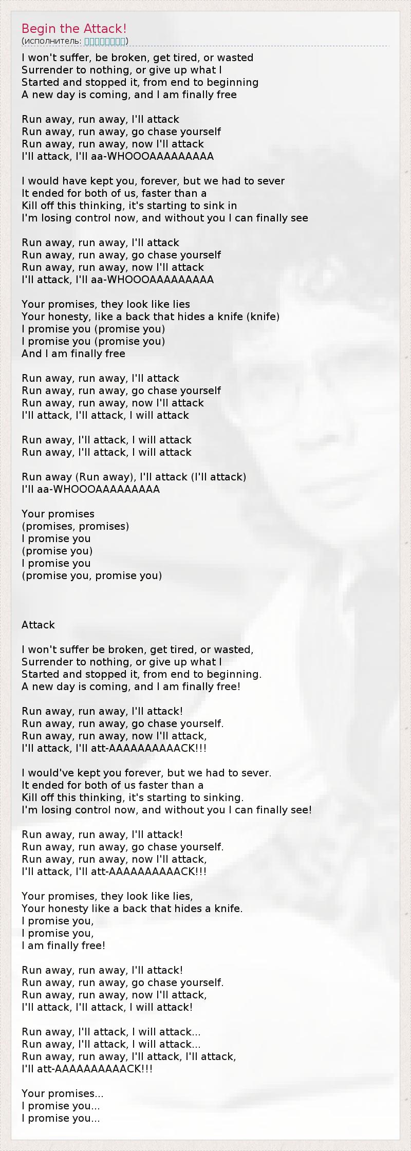 А как ты думаешь, о чем песня "Begin the Attack!" ?