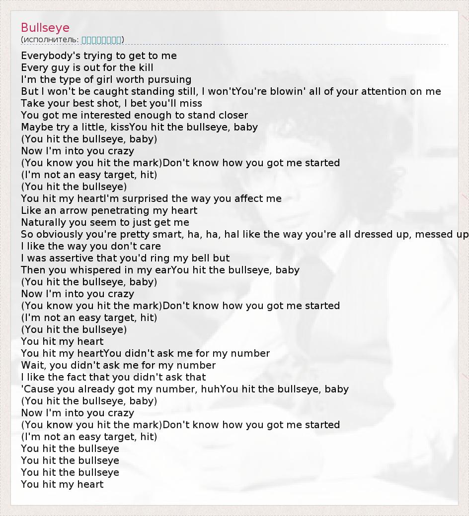 'Cause you already got my number, huhYou hit the bullseye, baby