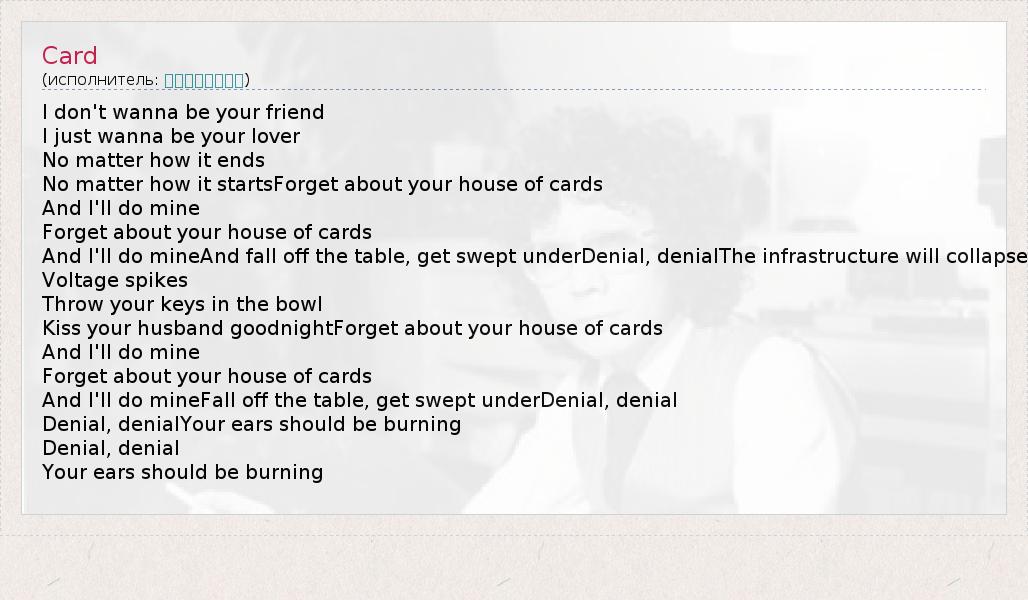 And I'll do mineAnd fall off the table, get swept underDenial, denialThe infrastructure will collapse