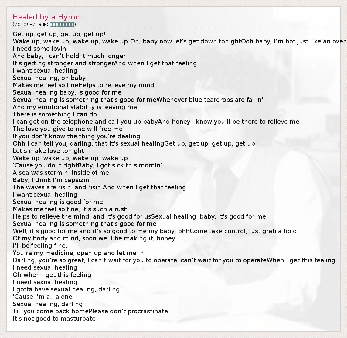 Ohh I can tell you, darling, that it's sexual healingGet up, get up, get up, get up