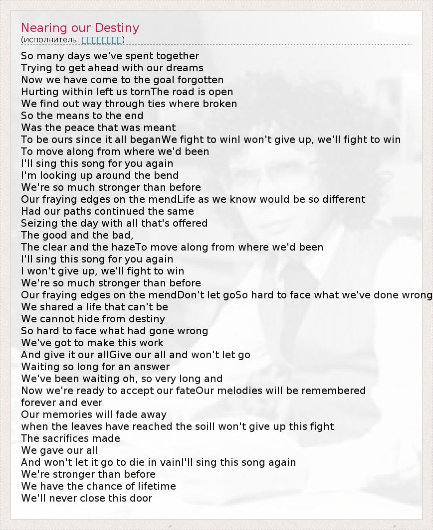 А как ты думаешь, о чем песня "Nearing our Destiny" ?