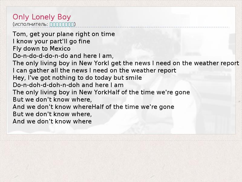 А как ты думаешь, о чем песня "Only Lonely Boy" ?