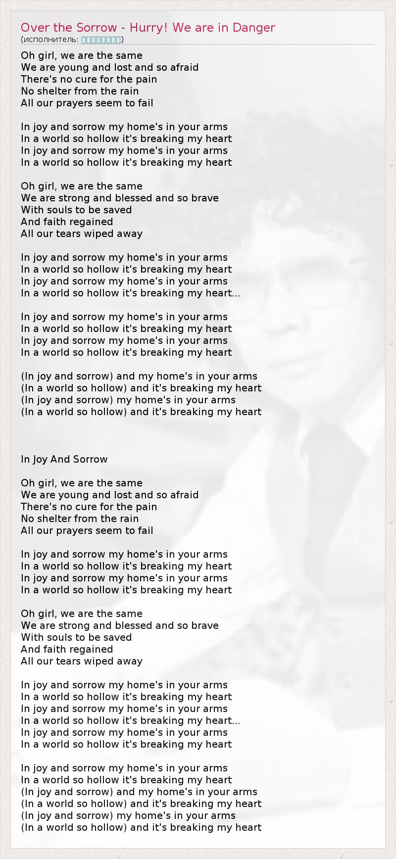 А как ты думаешь, о чем песня "Over the Sorrow - Hurry! We are in Danger" ?