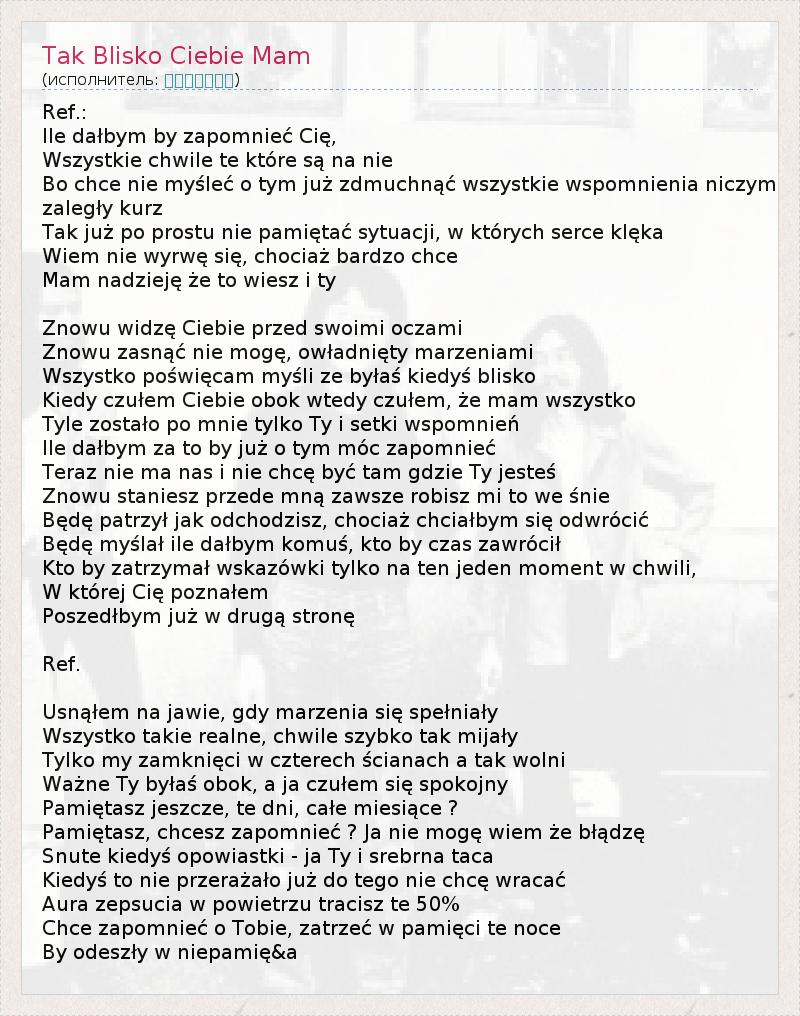 А как ты думаешь, о чем песня "Tak Blisko Ciebie Mam" ?