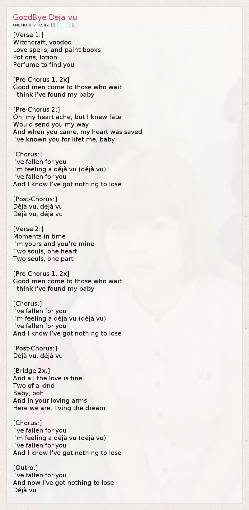 А как ты думаешь, о чем песня "GoodBye Deja vu" ?
