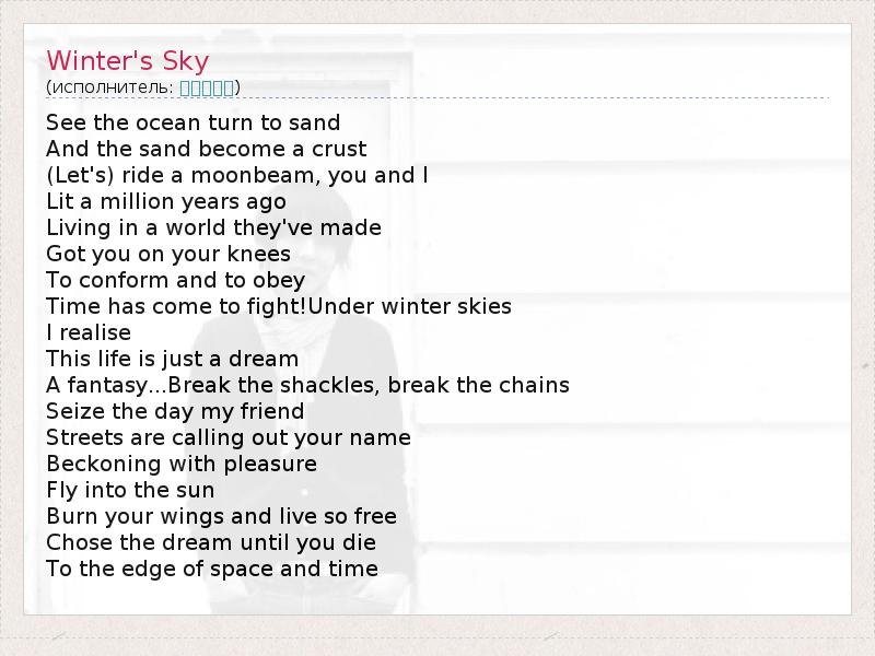 А как ты думаешь, о чем песня "Winter's Sky" ?