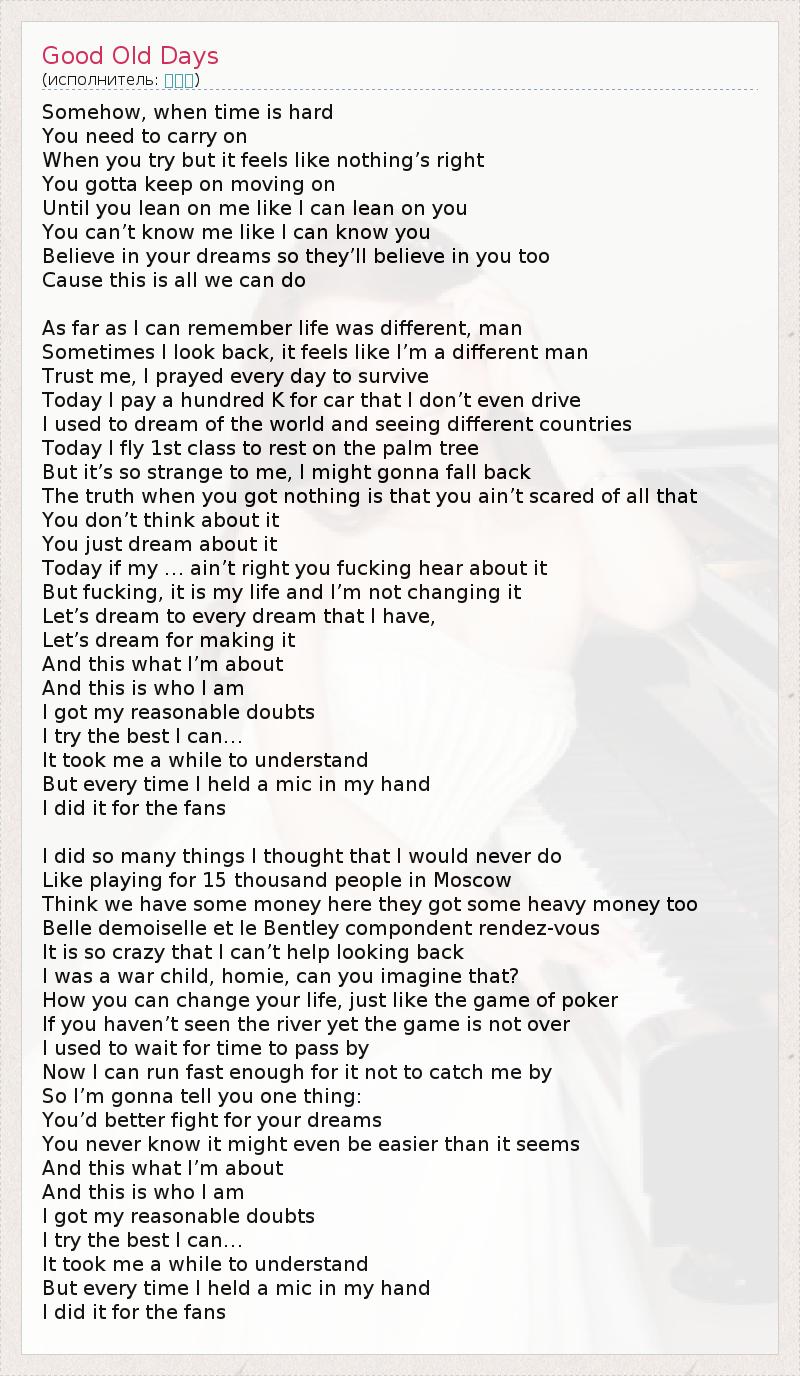 А как ты думаешь, о чем песня "Good Old Days" ?