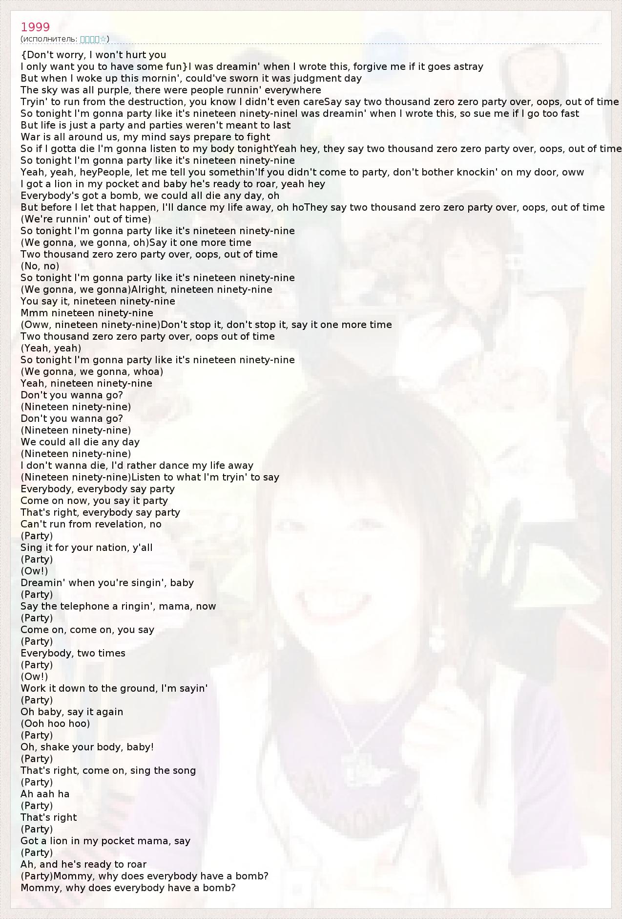 А как ты думаешь, о чем песня "1999" ?
