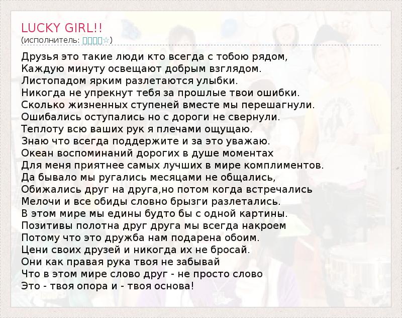 А как ты думаешь, о чем песня "LUCKY GIRL!!" ?
