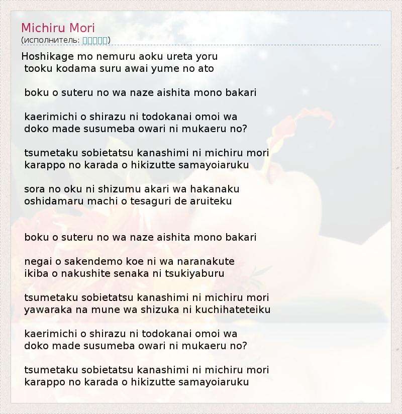 А как ты думаешь, о чем песня "Michiru Mori" ?