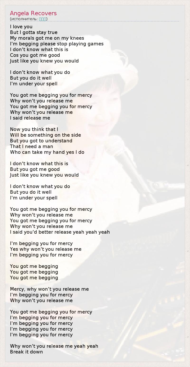 You got me begging you for mercy