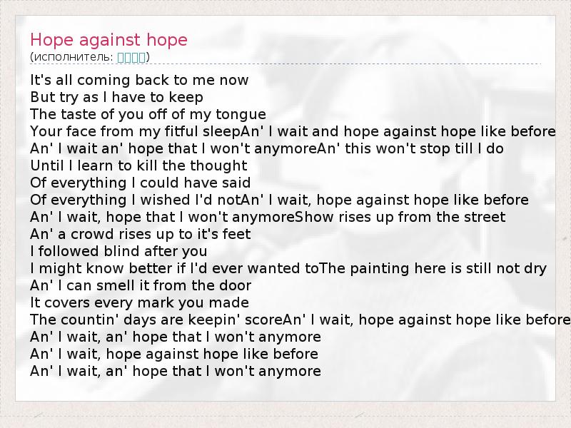 А как ты думаешь, о чем песня "Hope against hope" ?