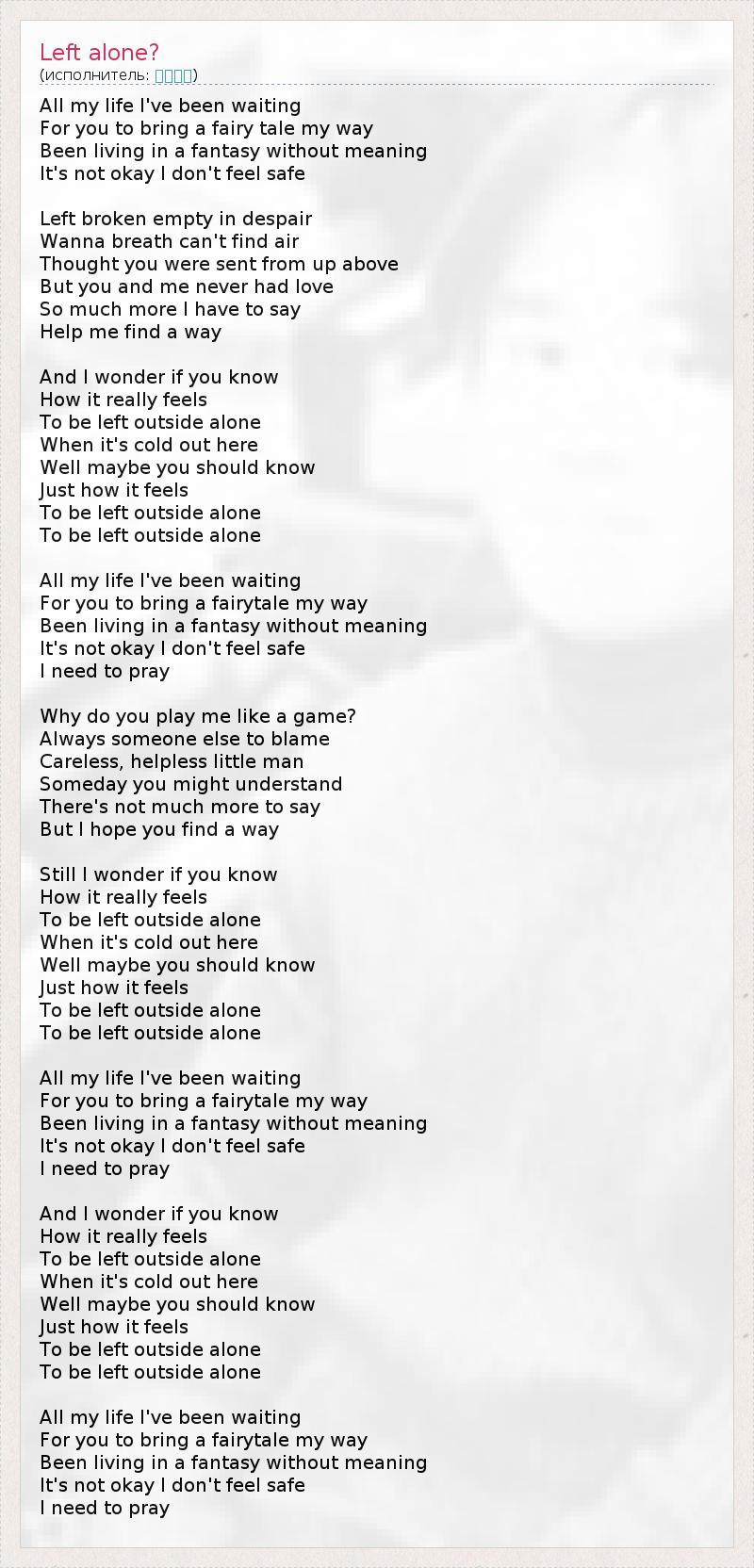 Что-о-о-о, знаешь ли ты как это остаться одному