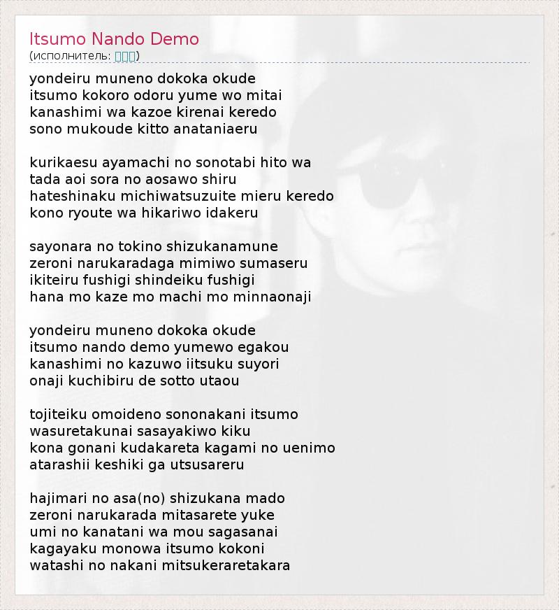 А как ты думаешь, о чем песня "Itsumo Nando Demo" ?