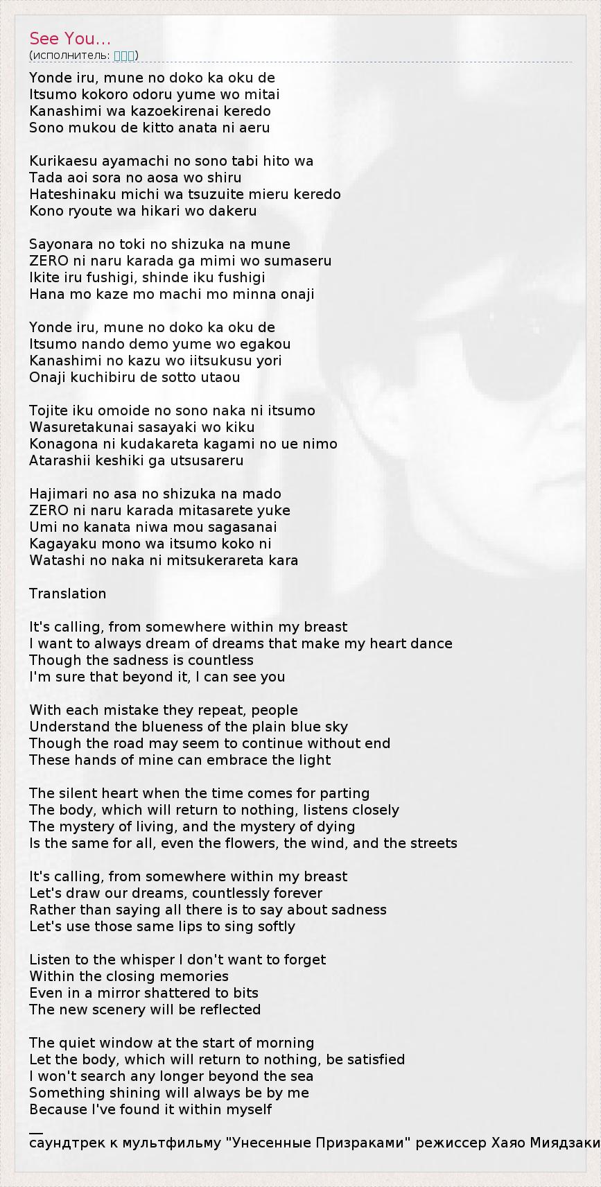 саундтрек к мультфильму "Унесенные Призраками" режиссер Хаяо Миядзаки