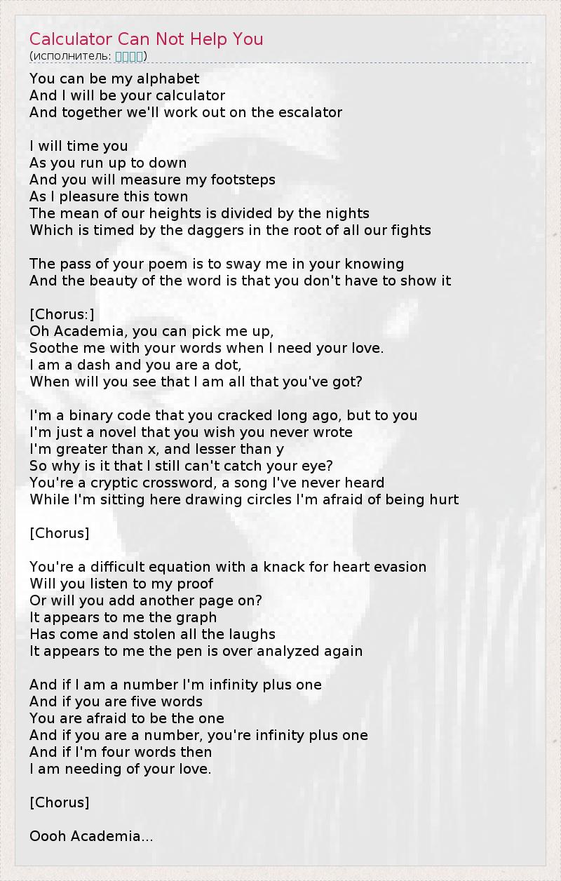 А как ты думаешь, о чем песня "Calculator Can Not Help You" ?