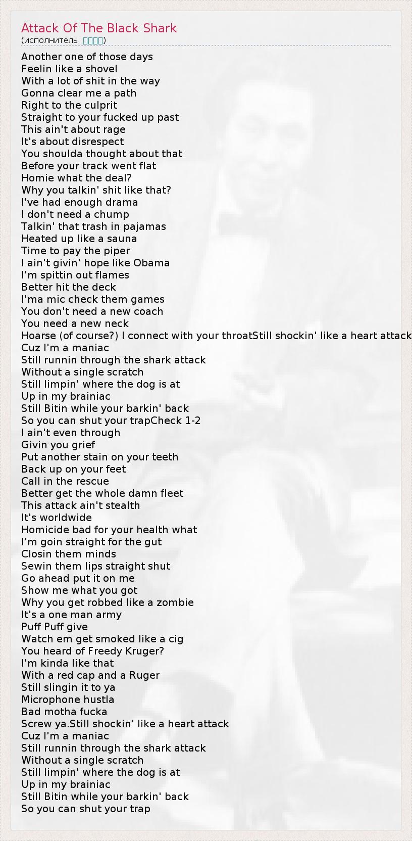 А как ты думаешь, о чем песня "Attack Of The Black Shark" ?