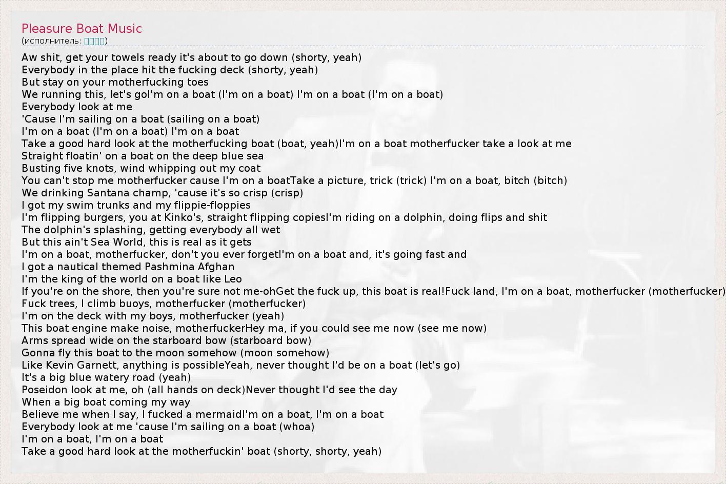 А как ты думаешь, о чем песня "Pleasure Boat Music" ?