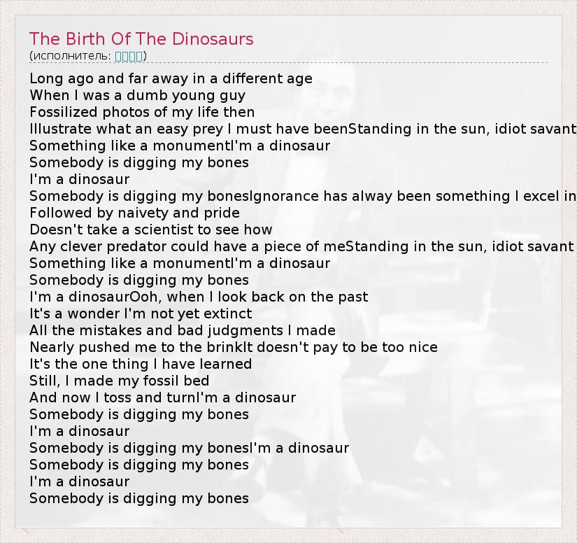 А как ты думаешь, о чем песня "The Birth Of The Dinosaurs" ?