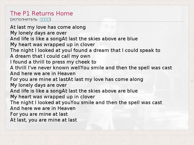 А как ты думаешь, о чем песня "The P1 Returns Home" ?