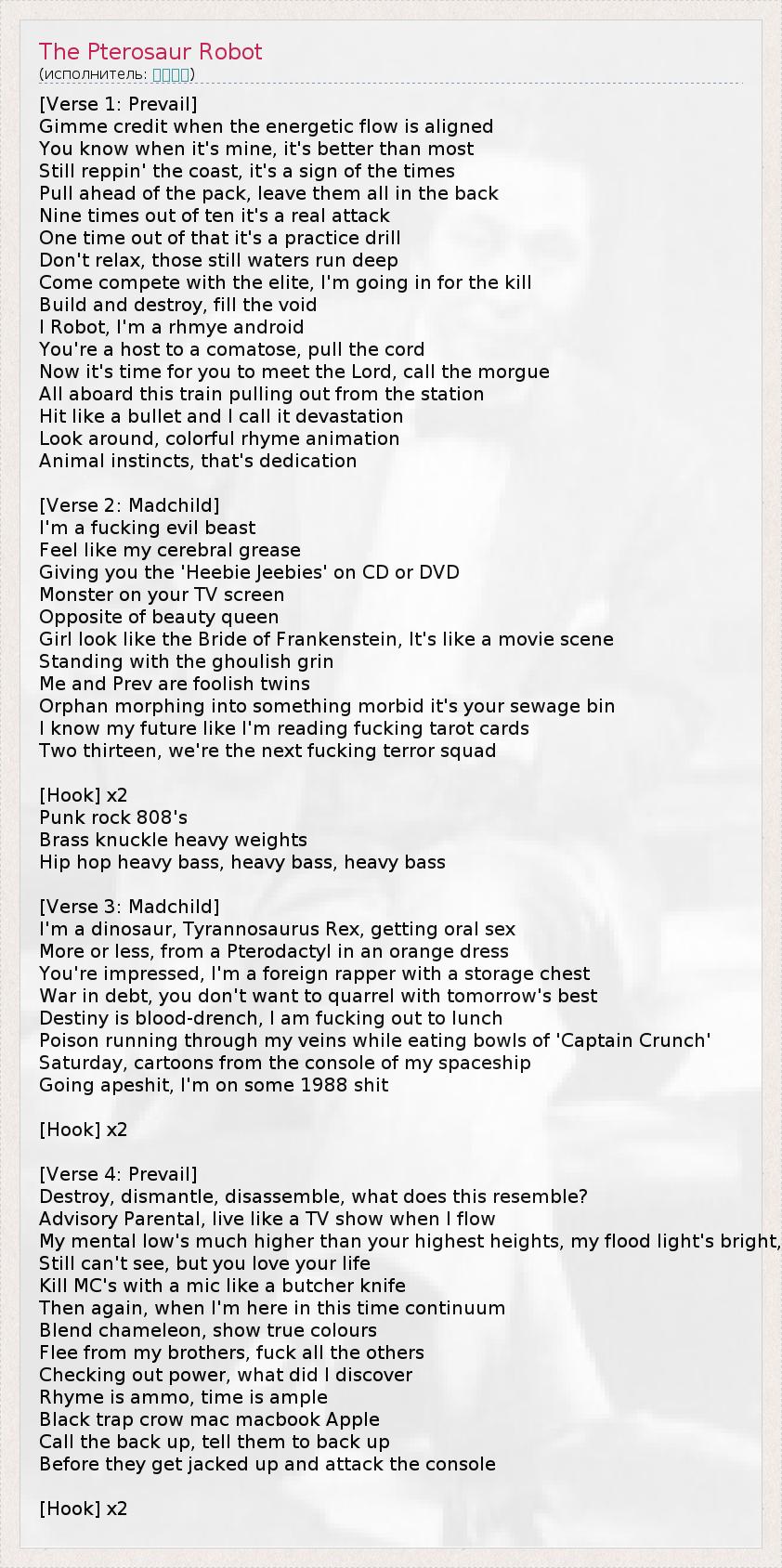А как ты думаешь, о чем песня "The Pterosaur Robot" ?
