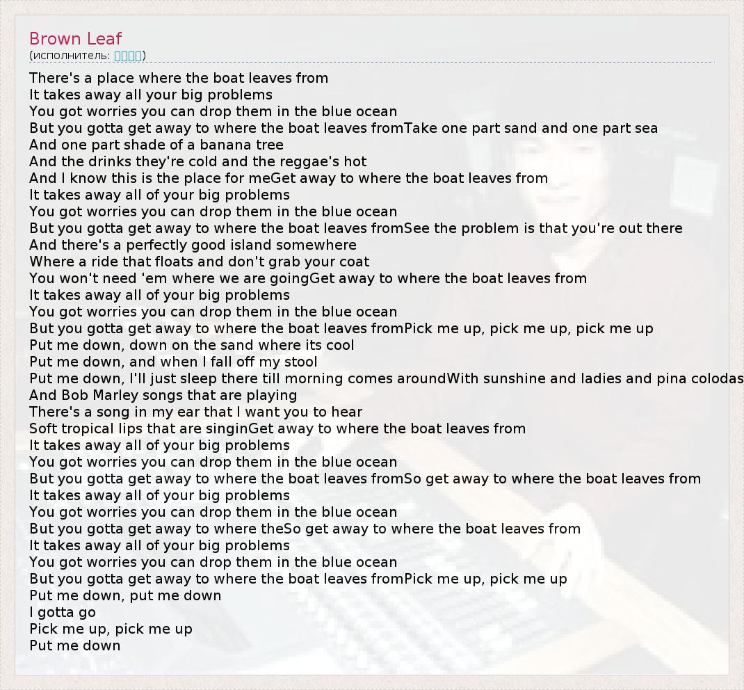 А как ты думаешь, о чем песня "Brown Leaf" ?