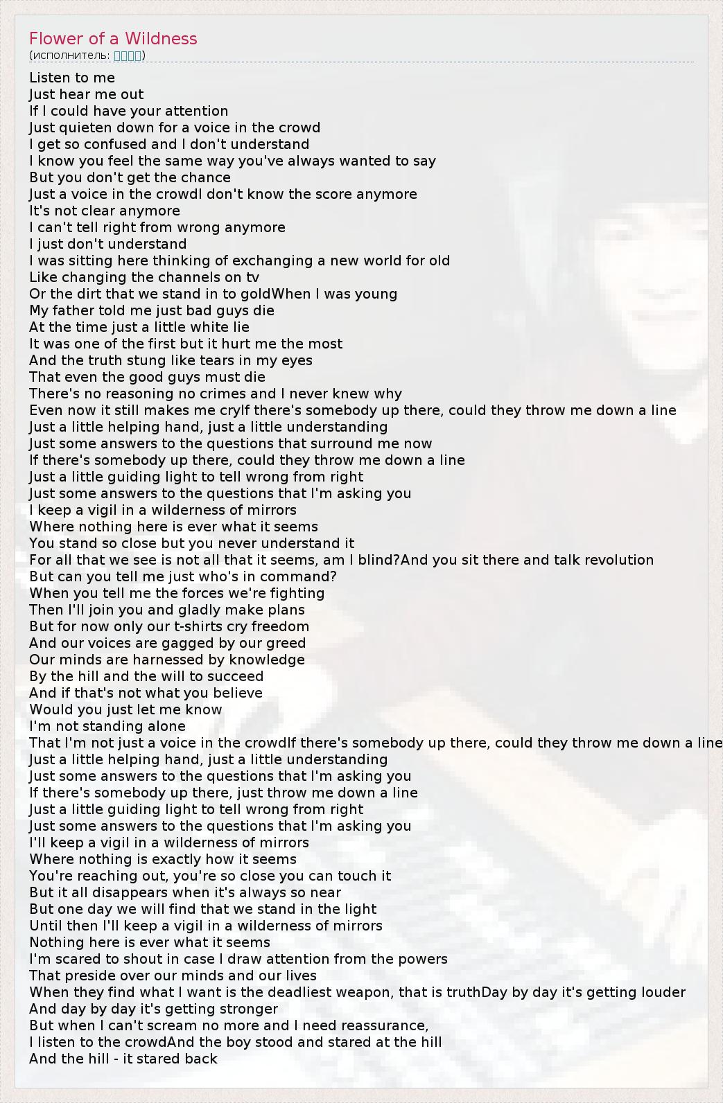 А как ты думаешь, о чем песня "Flower of a Wildness" ?