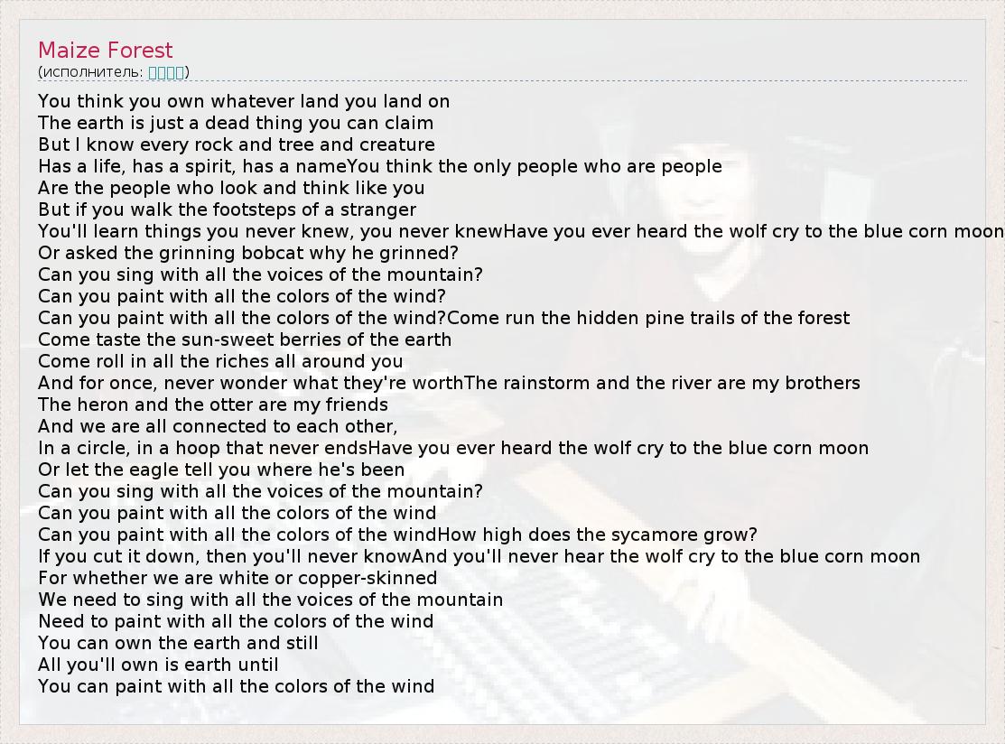 А как ты думаешь, о чем песня "Maize Forest" ?