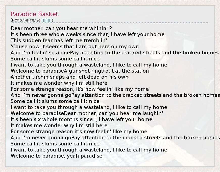 А как ты думаешь, о чем песня "Paradice Basket" ?