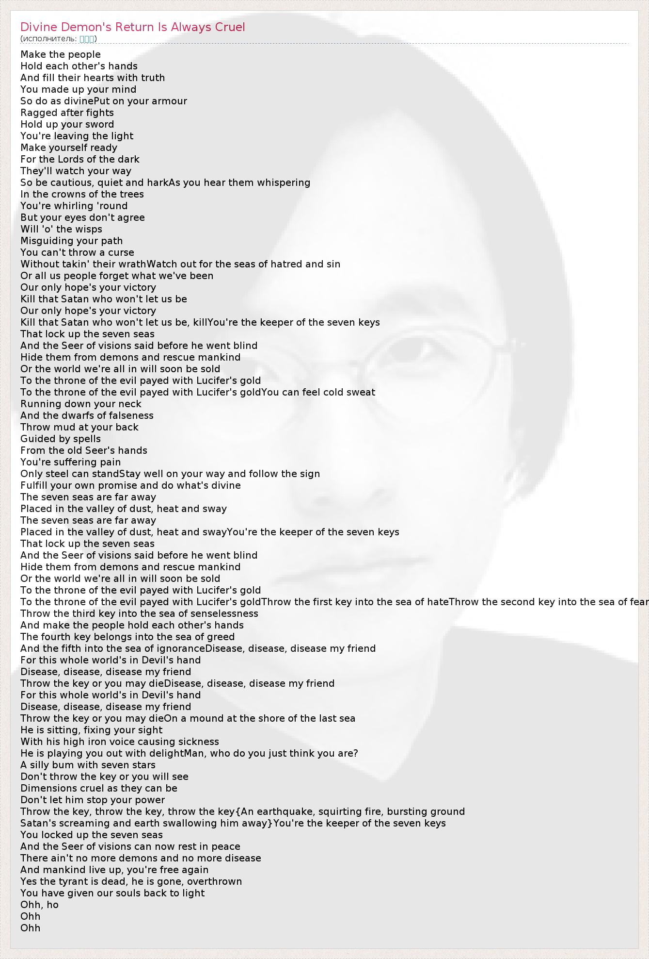 А как ты думаешь, о чем песня "Divine Demon's Return Is Always Cruel" ?