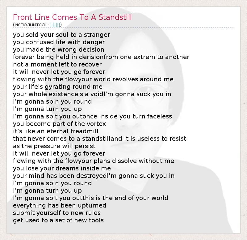 А как ты думаешь, о чем песня "Front Line Comes To A Standstill" ?