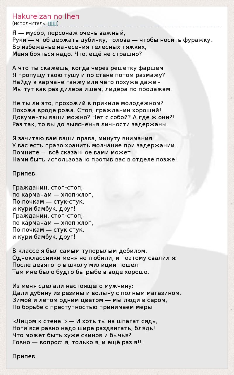 А как ты думаешь, о чем песня "Hakureizan no Ihen" ?