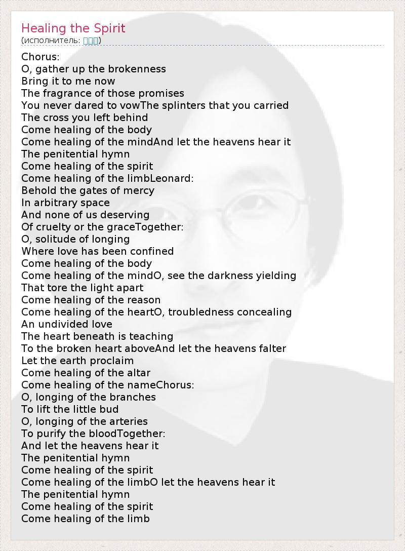 А как ты думаешь, о чем песня "Healing the Spirit" ?