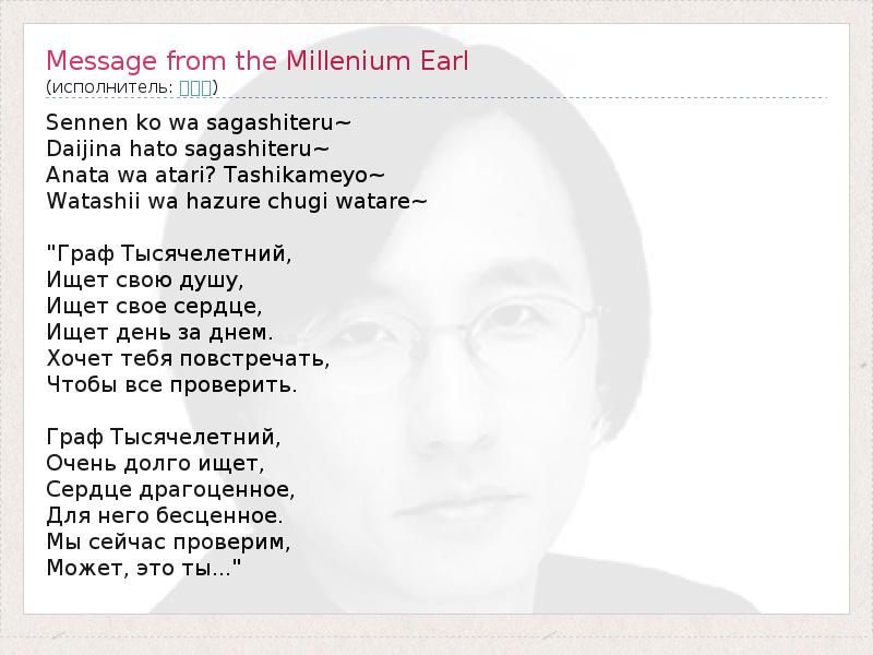 А как ты думаешь, о чем песня "Message from the Millenium Earl" ?