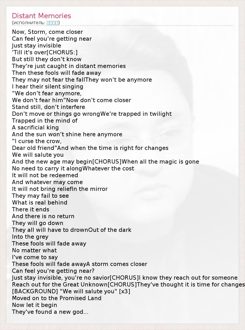 А как ты думаешь, о чем песня "Distant Memories" ?