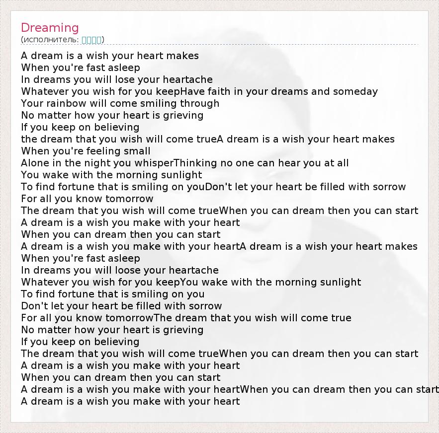 А как ты думаешь, о чем песня "Dreaming" ?