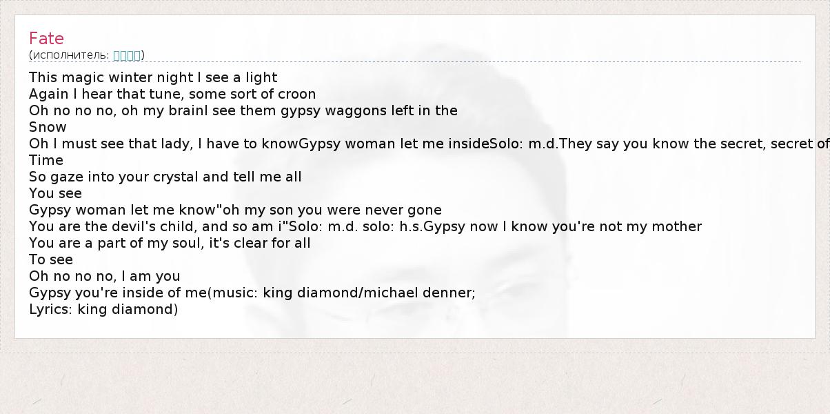 Gypsy you're inside of me(music: king diamond/michael denner;