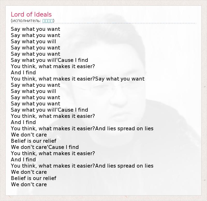 А как ты думаешь, о чем песня "Lord of Ideals" ?