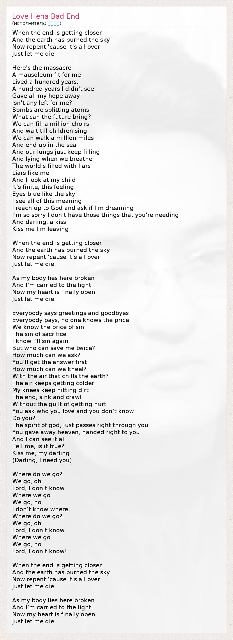 А как ты думаешь, о чем песня "Love Hena Bad End" ?