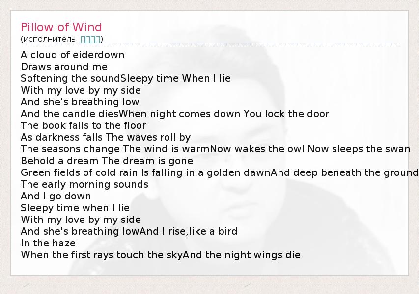А как ты думаешь, о чем песня "Pillow of Wind" ?