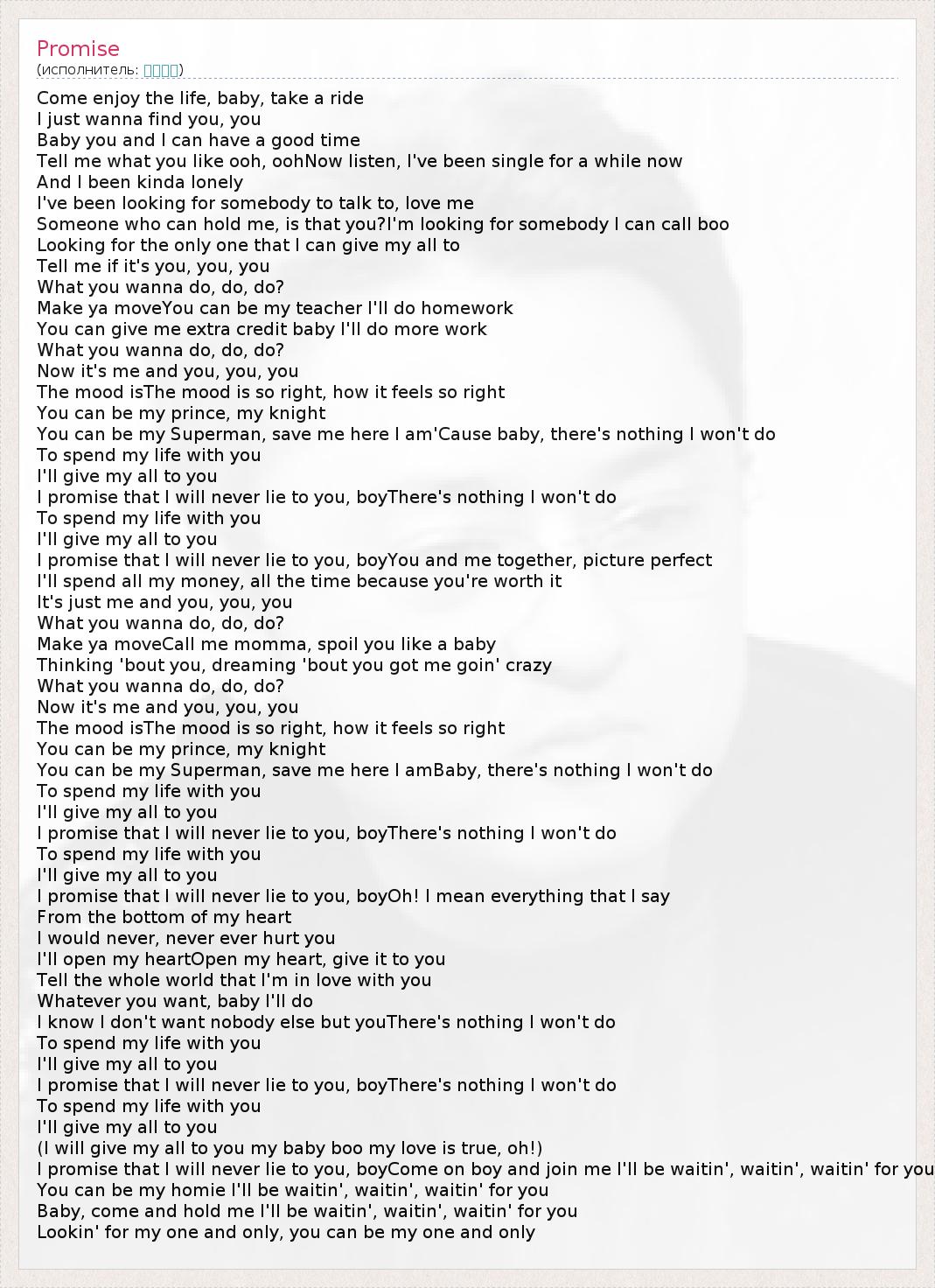 I promise that I will never lie to you, boyOh! I mean everything that I say