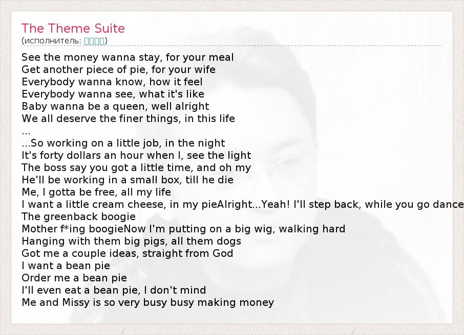 А как ты думаешь, о чем песня "The Theme Suite" ?
