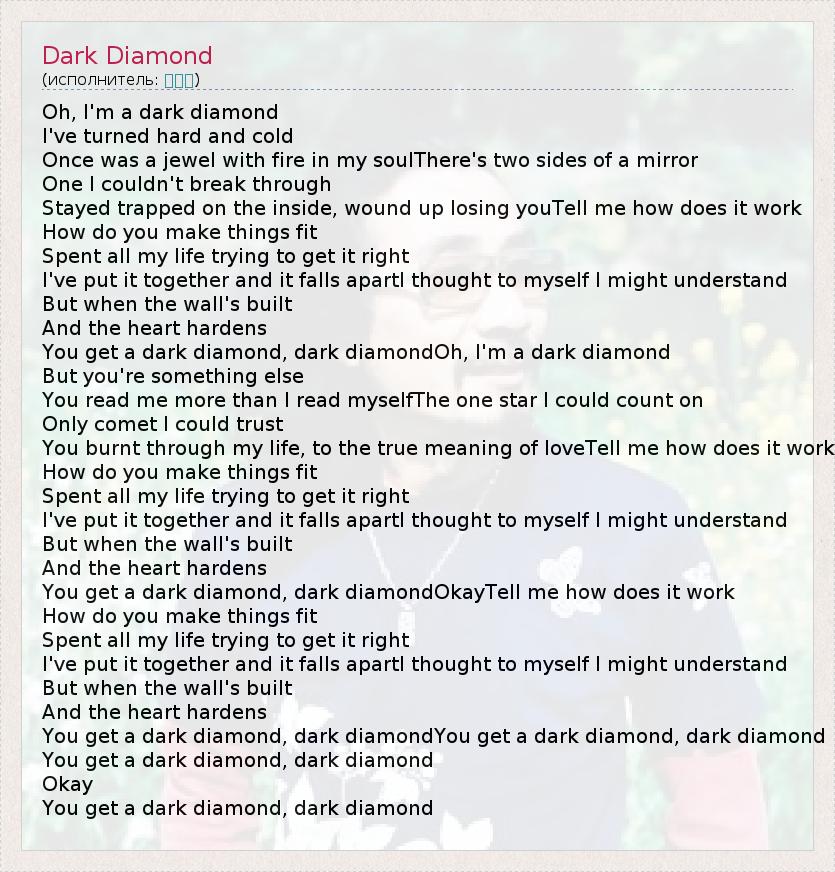 А как ты думаешь, о чем песня "Dark Diamond" ?