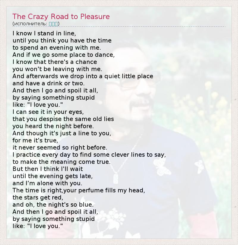 А как ты думаешь, о чем песня "The Crazy Road to Pleasure" ?