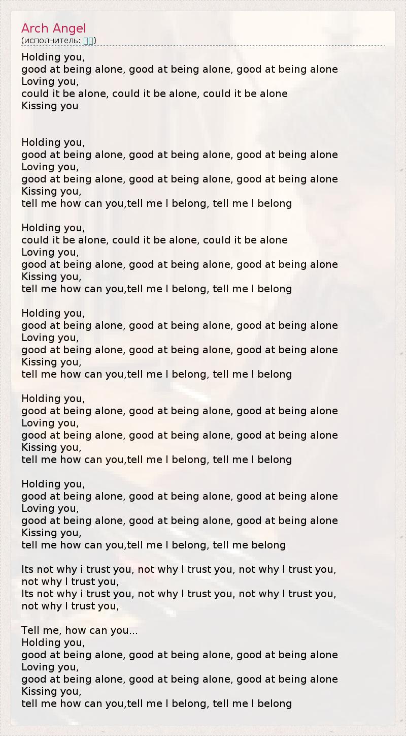 good at being alone, good at being alone, good at being alone